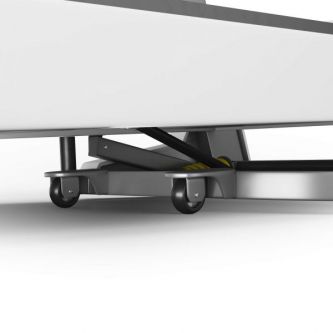 Складная беговая дорожка предоставляет возможность хранения в вертикальном положении. Наличие четырех транспортировочных колес облегчают перемещение и компактное размещение оборудования. Беговая зона 137×48,5 см оборудована коммерческим покрытием толщиной 1,6 мм с функцией автоматической смазки, гарантирующей длительный эксплуатационный ресурс и высокую износостойкость.