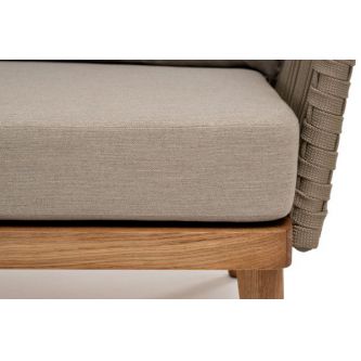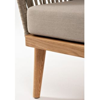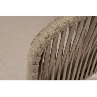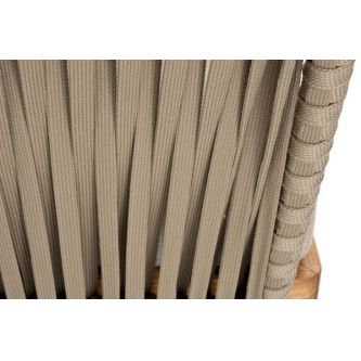 Боковины каркаса и спинка вручную оплетены роупом - эластичными синтетическими лентами, изготовленными из высокопрочных полиэфирных волокон. Цвет оплетки - серо-коричневый. Основание - дуб.