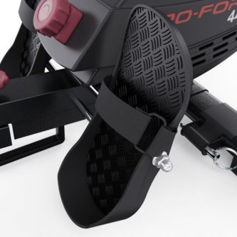 Рифленые педали с регулируемыми ремешками обеспечивают надежную фиксацию ног. Также есть компенсаторы неровности пола, которые гарантируют стабильность тренажера, а транспортировочные ролики обеспечивают лёгкое и удобное перемещение, позволяя без труда менять его расположение в помещении.