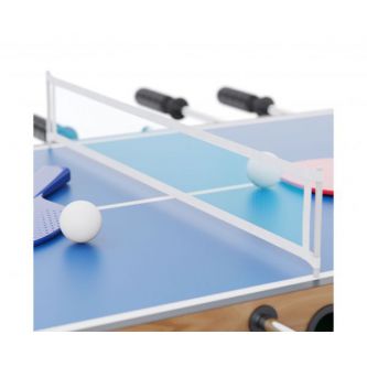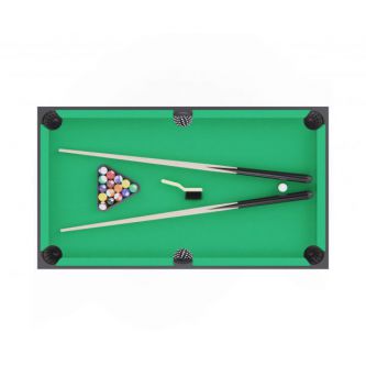 В набор входят: 2 футбольных мячика, 2 теннисные ракетки, 2 мяча для настольного тенниса, комплект бильярдных шаров, треугольник для их выравнивания, 2 кия, щетка для ухода за покрытием и 2 мелка. Всё необходимое для начала игры — уже в комплекте!