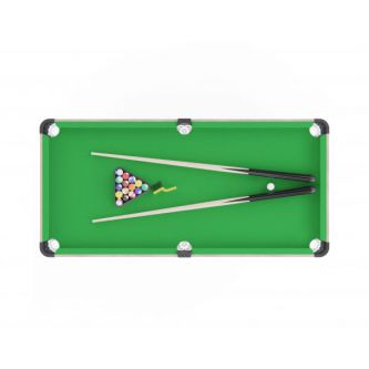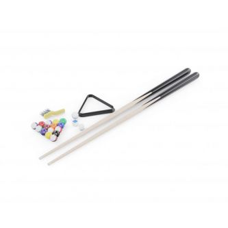 В набор входят все необходимые принадлежности: 2 кия, комплект шаров, 2 мелка, треугольник для расстановки и щётка для ухода за покрытием. Можно сразу начинать играть без дополнительных покупок.