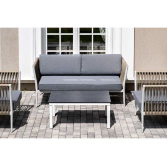 Лаунж-зона модульная угловая 4SIS "Канны" из роупа (веревки) со столом "Диего" (молочный), цвет бежевый