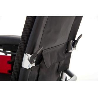 Регулируемые подлокотники длиной 41 см и увеличенной шириной, поддерживают руку по всей длине предплечья. Также, подлокотники раздвигаются по ширине от 43 до 55 см., что позволяет не только пользоваться ROUTE 14 людям с разной комплекцией, но и обеспечить человеку комфортную поездку в зимний период с учетом наличия теплой одежды. Регулируемая спинка принимает 5 вариантов положений и уменьшает нагрузку на позвоночник и поясницу.