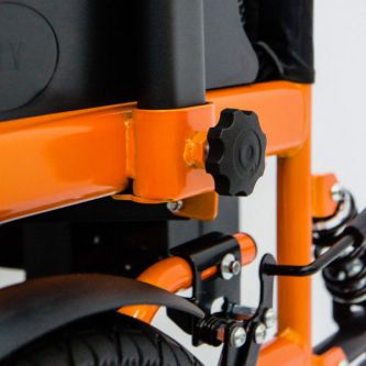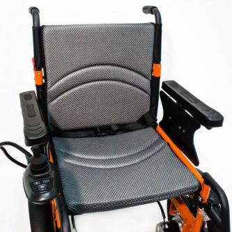 Контроллер может быть расположен рядом с подлокотником как с правой, так и с левой стороны, что делает управление удобным не только для правшей, но и для левшей. На нем расположен джойстик для управления коляской, кнопка звукового сигнала и кнопки регулировки скорости. В комплекте идет съёмный фонарик со встроенным USB-разъёмом, который можно использовать для зарядки телефона.