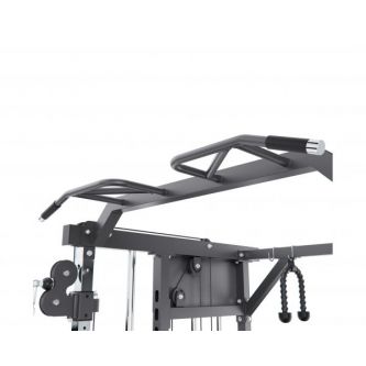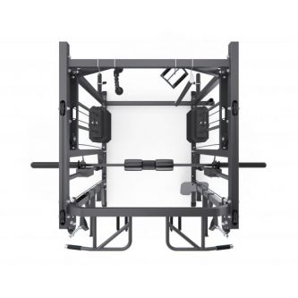 Тренажёр оснащён двумя блоками кроссовера, каждый из которых имеет вес 72 кг, что позволяет точно регулировать нагрузку и эффективно прорабатывать различные группы мышц. Отдельно предусмотрены амортизатор и весовой диск, упор для ног и поручни, что позволяет выполнять тяги, жимы, приседания, проработку спины, рук и корпуса. Турник с широкой перекладиной даёт возможность выполнять множество упражнений на верхнюю часть тела.