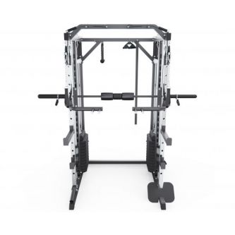 Конструкция объединяет прочие элементы рамы, балки, стойки, рукояти, держатели и предохранители, формируя единую многофункциональную и надёжную систему. Рама выполнена из стального профиля 75 х 50 х 1,5 мм, что обеспечивает высокую жёсткость и устойчивость конструкции при работе с большими весами и гарантирует безопасные и разнообразные тренировки.