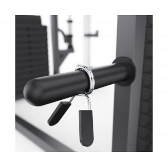Встроенный гриф движется по направляющим с использованием блокировочного крюка и предохранителей, что гарантирует стабильность и исключает риск неконтролируемого падения веса. Контактная площадка диаметром 209 см повышает устойчивость тренажёра во время выполнения упражнений. Дополнительный держатель позволяет использовать обычный гриф для свободных упражнений. На стойках предусмотрены короткие и длинные предохранители, поручни, опорные элементы и система крепления, чтобы каждый пользователь мог настроить тренажёр под себя.