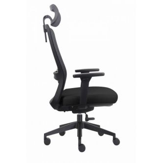 Кресло Cross — это функциональное и современное решение для тех, кто ценит комфорт и продуманный эргономичный дизайн. Чёрный цвет и лаконичные формы делают кресло универсальным для любого офисного интерьера. Сиденье обито прочной тканью и наполнено пеной Memory foam, обеспечивающей комфорт при длительной работе. Спинка из сетки с пластиковой рамой дополнена регулируемой поясничной опорой. Подголовник настраивается по высоте и углу наклона для поддержки шеи. 2D подлокотники с полиуретановыми накладками регулируются по высоте и обеспечивают дополнительное удобство. Нейлоновая крестовина и ролики диаметром 60 мм обеспечивают стабильность и лёгкое передвижение. Синхромеханизм со слайдером позволяет адаптировать кресло под рост сидящего и фиксировать спинку в трех положениях.