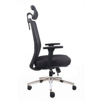 Спинка из сетки поддерживает оптимальную вентиляцию, а регулируемый подголовник помогает снизить нагрузку на шею.