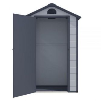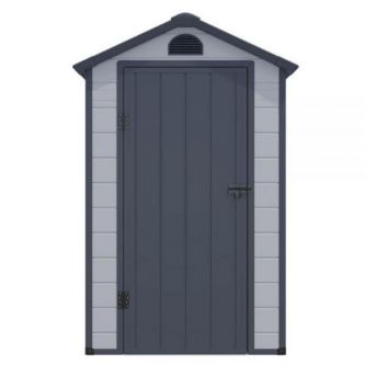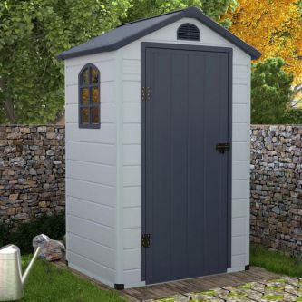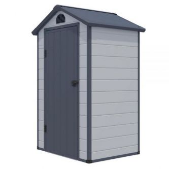 Пластиковый сарай для хранения различных садовых инструментов и инвентаря на садовом участке может быть размещен в любом месте участка благодаря небольшим размерам.