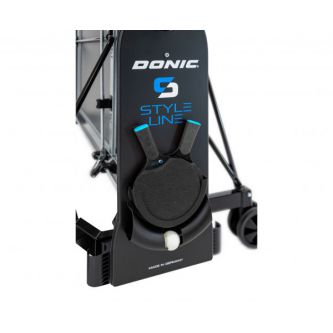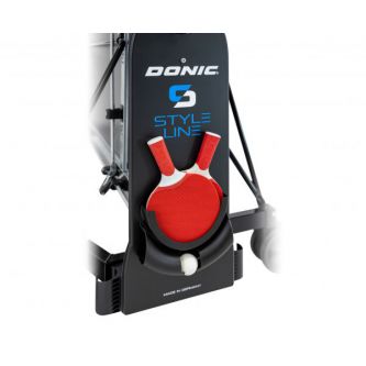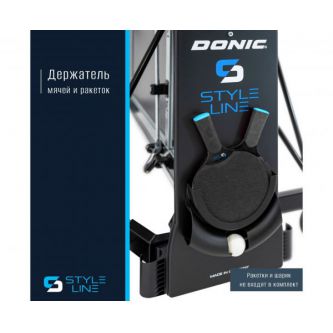 Для удобного хранения ракеток и мячей предусмотрен специальный держатель, который входит в комплект поставки. Стол оснащен четырьмя прорезиненными двойными роликами с плавным ходом диаметром 128 мм, которые обеспечивают легкое перемещение стола.