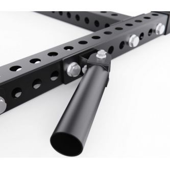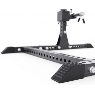 Максимальная нагрузка на узел для подвешивания дисков составляет 150 кг. Для надежной и безопасной фиксации весов предусмотрен пружинный зажим, который упрощает работу с нагрузкой и повышает комфорт во время тренировок.
