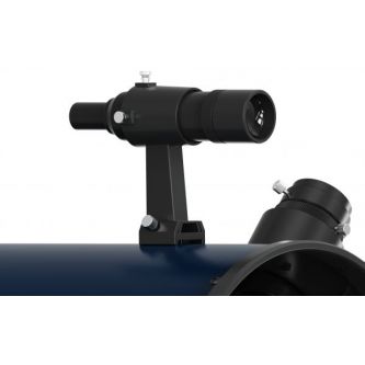 Оптическая труба из металла устанавливается на простую и устойчивую монтировку Добсона, изготовленную из дерева. Ее преимущества – это несложное ручное управление и легкость сборки/разборки. Телескоп рассчитан на эксплуатацию при температуре от −5 до +35°C. В комплект входят все необходимые для старта аксессуары: окуляры Plössl 10 и 25 мм, 1,25", а также оптический искатель 8х40 для удобного наведения на цели.