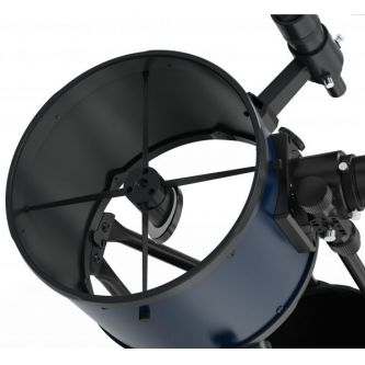 Управление телескопом интуитивно понятно, его быстро освоит даже начинающий астроном. ОТА установлена на устойчивую и простую в использовании монтировку Добсона, изготовленную из качественно обработанного дерева. Для точной настройки резкости видимого изображения служит 2-скоростной реечный фокусер 2" с адаптером на посадочный диаметр 1,25". Максимальное полезное увеличение системы достигает 500 крат. В комплект поставки входят окуляры Plössl 10 и 25 мм (1,25"), которые обеспечивают увеличение 127х и 51х соответственно. Помимо них, набор включает и другие полезные аксессуары: оптический искатель 8х40 для удобного наведения на объекты, вентилятор для активного охлаждения главного зеркала (работает от 8 батареек типа АА, приобретаются отдельно) и защитный чехол для оптической трубы.