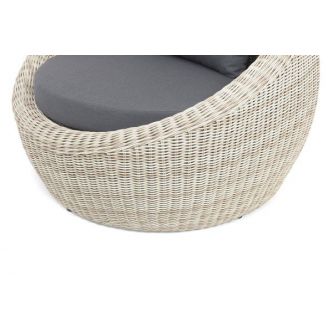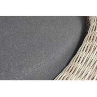 В комплекте с уличным ротанговым креслом идут мягкие подушки со съёмными чехлами серого оттенка. Они пошиты из полиэстера, который не боится повышенной влажности благодаря наличию влагоотталкивающей пропитки. Плотность ткани составляет 300гр/м2.