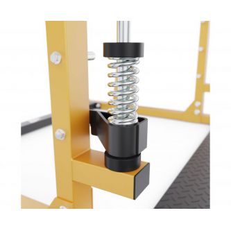 Тренажер имеет 9 уровней регулировки по высоте, что позволяет гибко настраивать рабочее положение под разные упражнения и рост спортсмена. Для дополнительных тренировок предусмотрен турник длиной 88 см с максимальной нагрузкой до 200 кг.