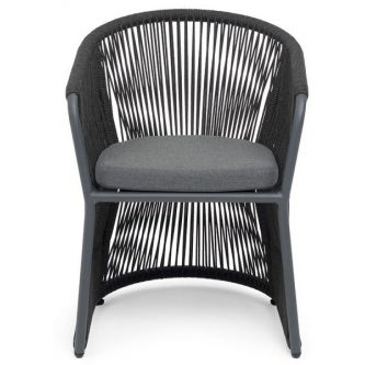 Выполнен из алюминиевого каркаса темно-серого (RAL7024) цвета. Оплетка - современный материал «роуп», которым каркас оплетался вручную.