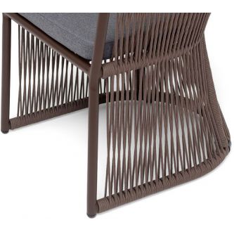 Выполнен из алюминиевого каркаса коричневого (RAL8016) цвета. Оплетка - современный материал «роуп», которым каркас оплетался вручную.