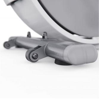 Для устойчивости тренажёр оснащён компенсаторами неровности пола, благодаря которым он надёжно стоит даже на неидеальной поверхности. Встроенные транспортировочные ролики позволяют легко переместить тренажёр с места на место, что особенно удобно при использовании в ограниченном пространстве.