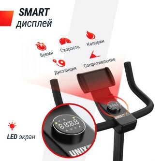 Встроенный SMART LED-дисплей отображает важные показатели тренировки: время, скорость, расстояние, сопротивление и количество сожженных калорий. Это позволяет отслеживать прогресс и мотивировать себя на новые достижения. На корпусе велотренажера расположен разъем USB Type-C который можно использовать для зарядки внешних устройств и как дополнительный источник питания дисплея тренажера, в случае низкой нагрузкой на генератор, например при занятиях для реабилитации. Обратите внимание, кабель в комплект поставки не входит.