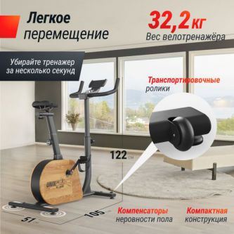Вертикальный генераторный велотренажер UNIX Fit BL-380E Wood сочетает в себе передовые технологии, комфорт и стильный ЭКО дизайн, что делает его идеальным выбором для любого уровня подготовки.