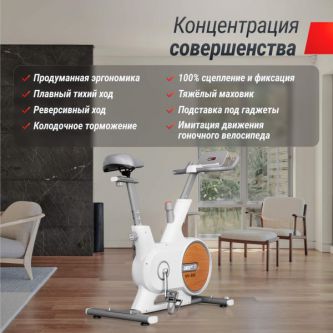 Эргономичное сиденье с регулировкой по горизонтали и вертикали обеспечивает идеальную посадку независимо от роста и телосложения. Это делает занятия на спин байке комфортными и эффективными, позволяя выбирать оптимальные позиции для различных групп мышц. Руль домашнего кардиотренажера регулируется на четыре уровня высоты, что также способствует снижению нагрузки на спину и плечи.